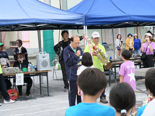 団体競技の中で綱引きは東蒔田第一町内会、町内対抗リレーは共進町一丁目町内会が優勝し、茅野連合町内会長よりトロフィーと賞状により表彰されました。