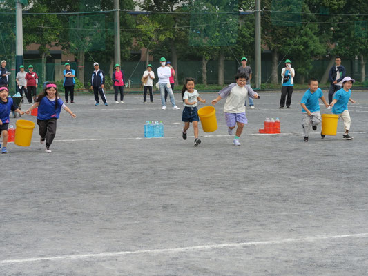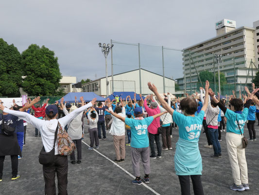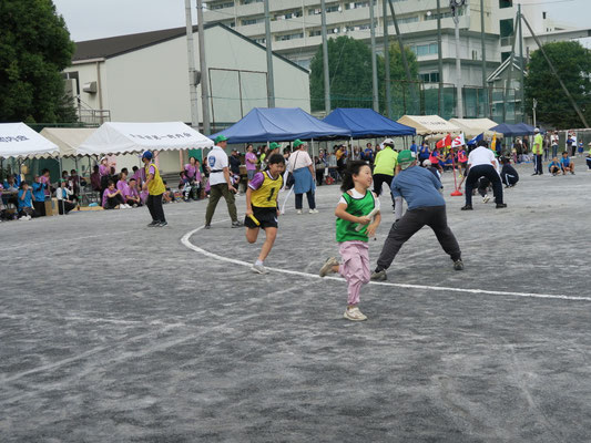 前日の雨もやみ時々陽もさす中、幼児から高齢者まで皆元気よく頑張っていました。